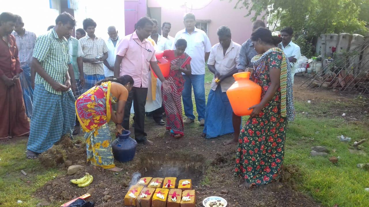 Grâce à la générosité de la Fondation Berset et à vos dons, le premier coup de pelle a été donné début novembre 2018. Balu, travailleur social d'APARA, a pu obtenir l'accord des autorités pour construire ce futur Tuition Center, situé dans un petit village proche de Cheyyambakkam. Les fondations ont été creusées après une cérémonie appelée Puja, destinée à apporter la bénédiction au lieu. La construction a commencé juste après les fêtes des lumières de Diwali et s'est terminée au mois d'août 2019. Grâce à un don de CHF 8'000.- de la Fondation Philantropique Famille Sandoz, nous avons pu engager une enseignante afin d'assurer un accueil parascolaire dès mi-août 2019. Le parrainage des enfants débutera au mois d'avril 2020, en même temps que la rentrée scolaire. Le centre a été inauguré en présence de Balu et des habitants du village (cf. photos ci-dessous).